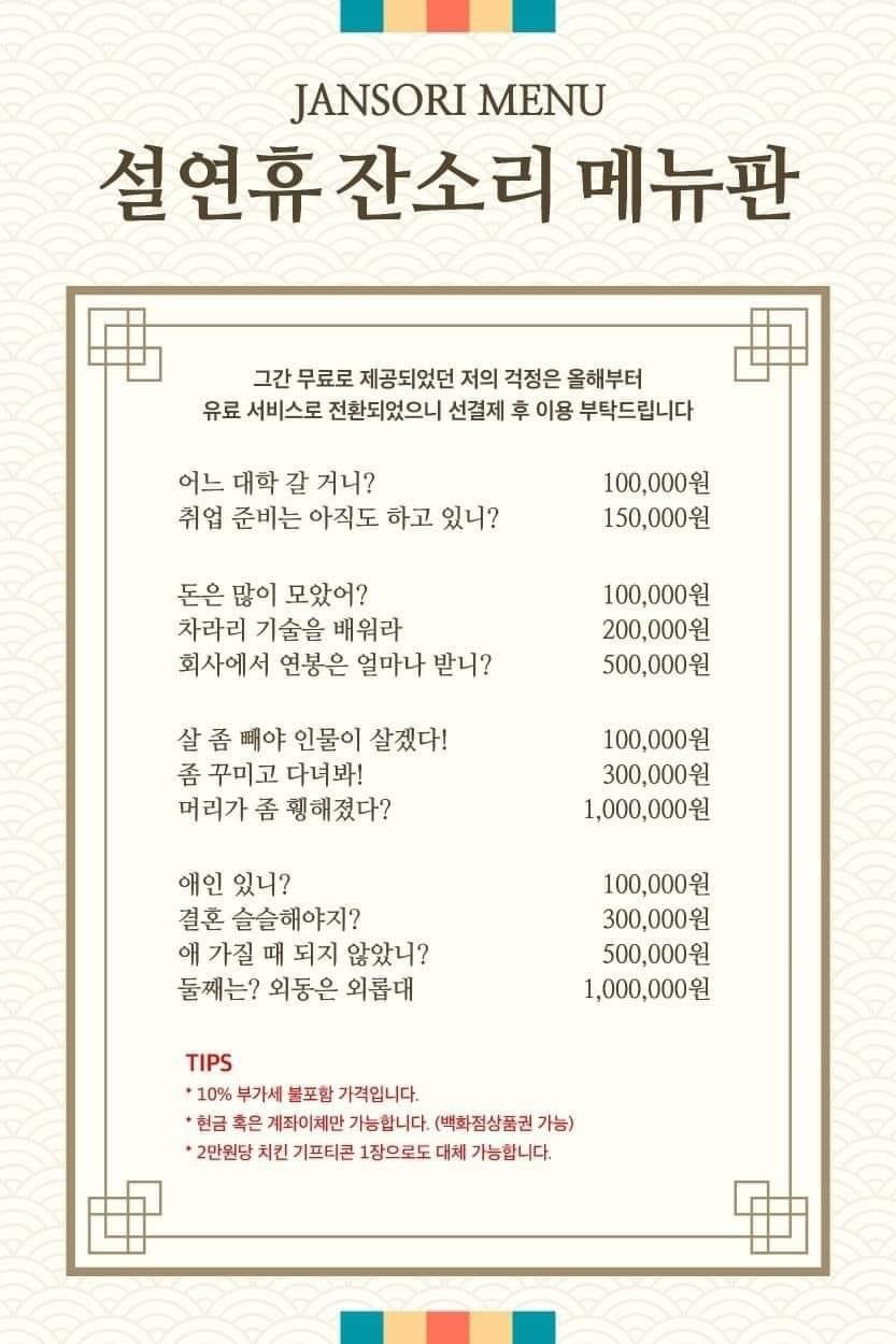 잔소리가 하고싶다면 이 메뉴판을 가지고 가시오 아시겟소나??